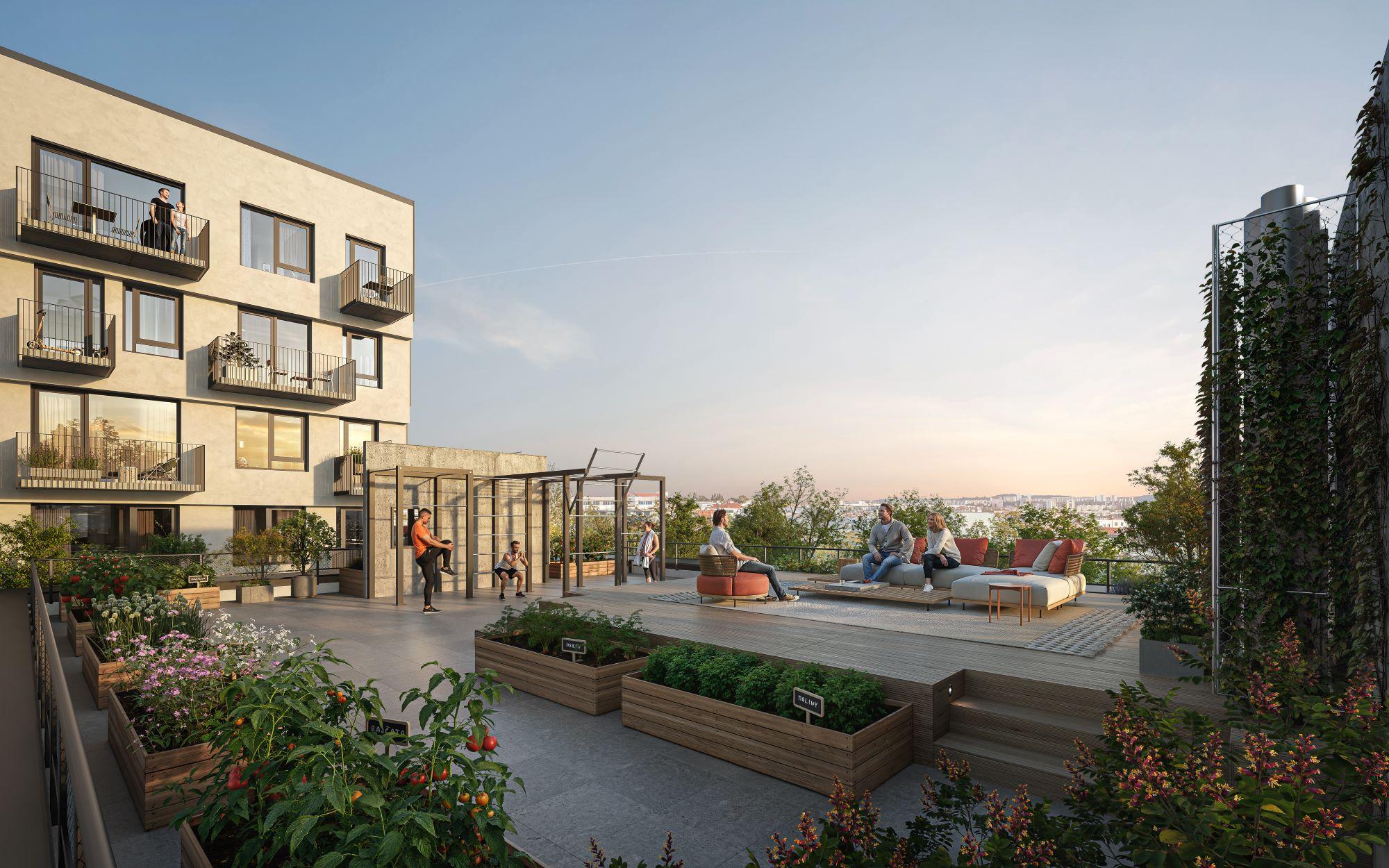Objekt nabídne široké spektrum společných prostor, včetně koláren, kočárkáren a prádelen. Dvě střešní terasy vytvoří prostor pro komunitní setkávání i relaxaci. Jedna z nich bude zahrnovat workout plochu a záhonky na pěstování zeleniny či bylinek, druhá pak poskytne možnost grilování, venkovní kuchyni a krásné výhledy na město.