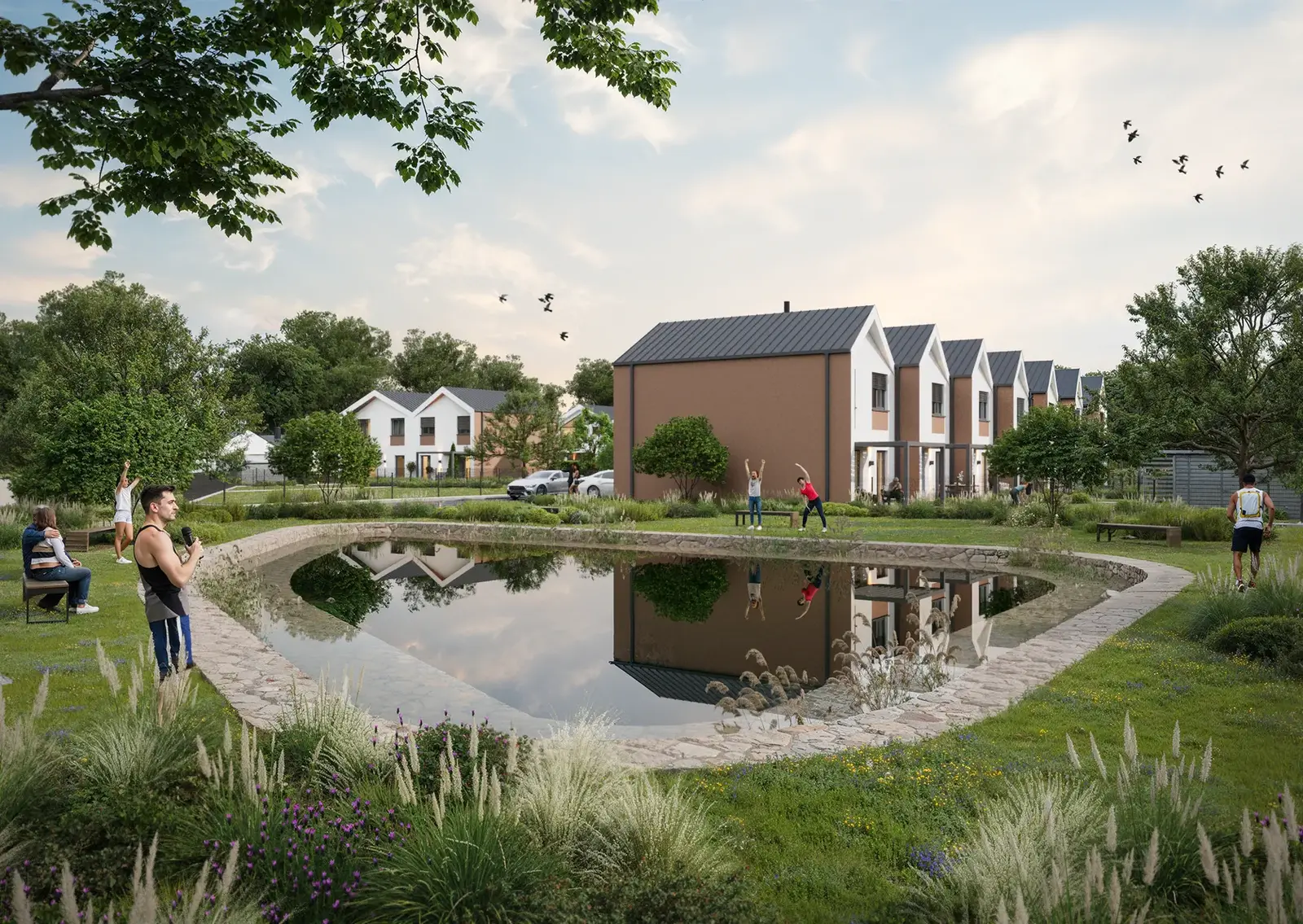Domy jsou umístěny na pozemcích o velikosti od 203 m² a každý z nich disponuje vlastní zahradou a venkovním prostorem, který přirozeně rozšiřuje obytnou plochu domu a nabízí místo pro relaxaci i rodinné aktivity. Projekt klade důraz na nízkoenergetické řešení, kvalitní materiály a precizní zpracování. Všechny domy jsou napojeny na kompletní inženýrské sítě, v ceně je zahrnuto oplocení, venkovní zpevněné plochy i zahradní domek.