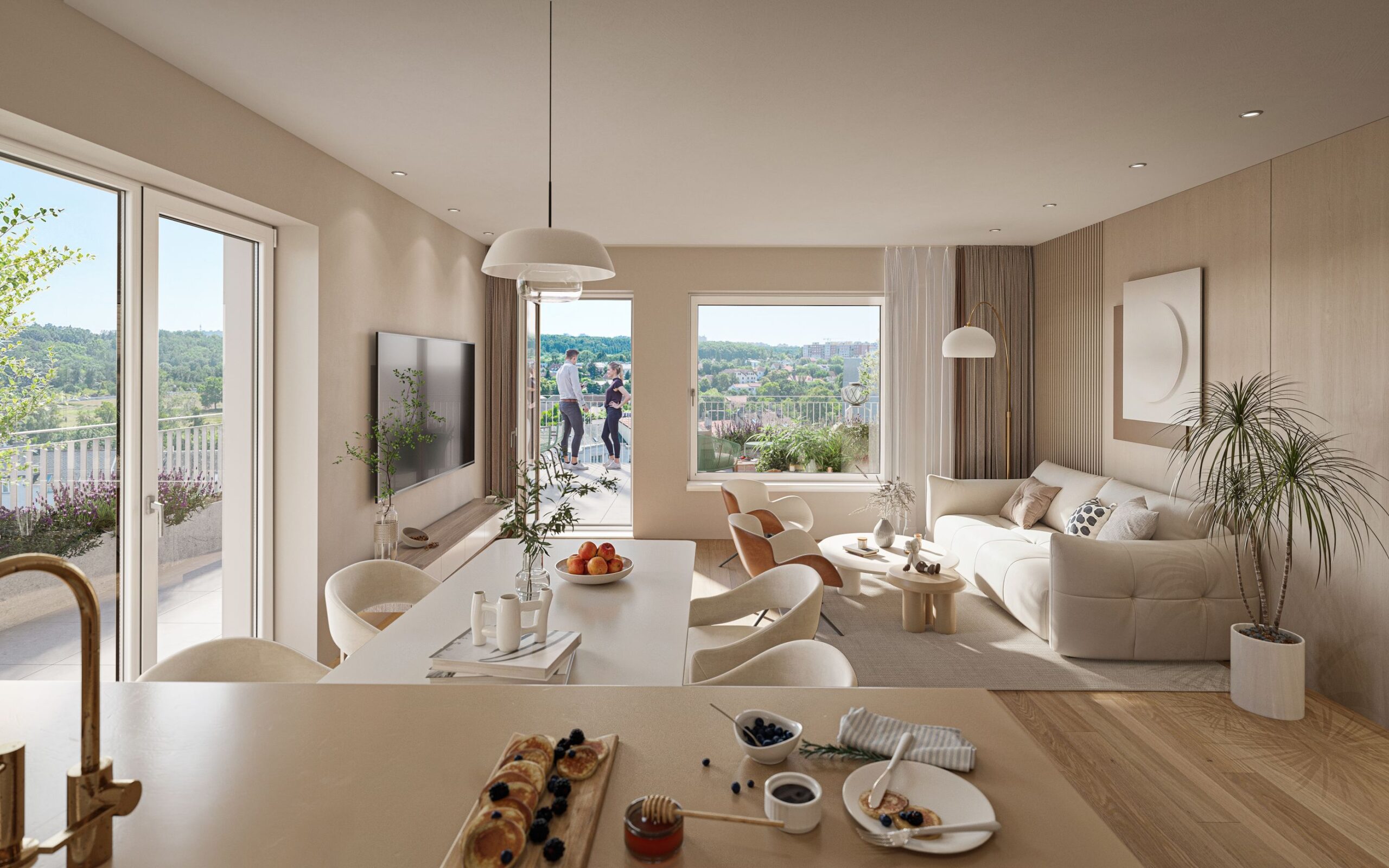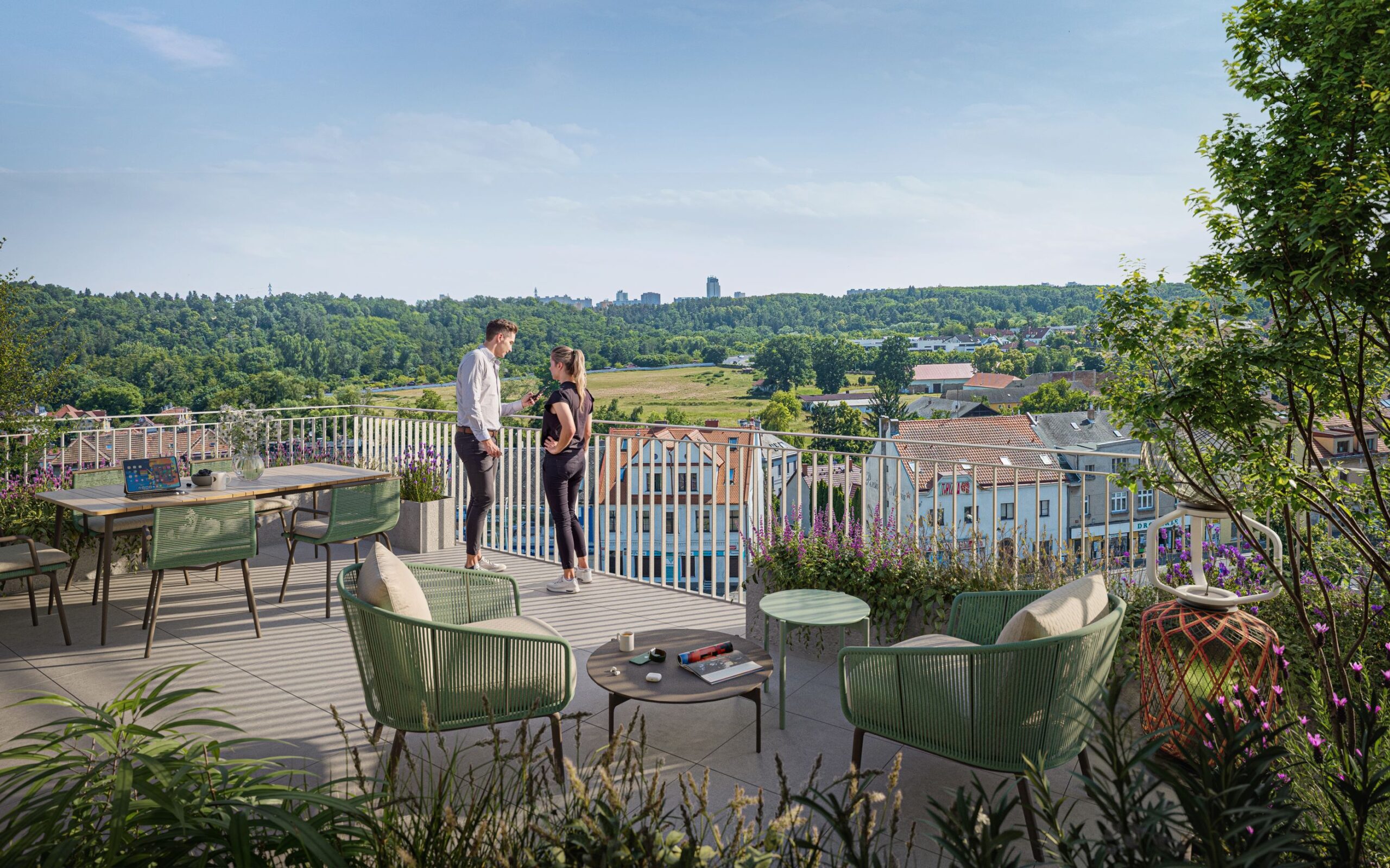 Byty jsou navrženy s důrazem na funkčnost, vzdušnost a pohodlí a většina z nich disponuje balkónem nebo terasou, které jsou plně připravené pro celoroční využívání včetně venkovního osvětlení a zásuvek. Součástí projektu je nadstandardní technické a provozní zázemí, které zahrnuje 86 parkovacích stání v podzemních garážích a 82 sklepních kójí poskytujících dostatek úložného prostoru.