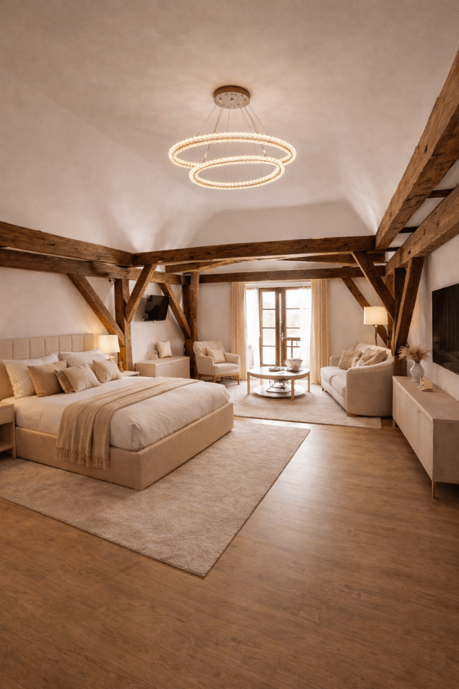 Část jednotek je orientována do klidné zahrady se slaným venkovním bazénem a relaxačními zákoutími, zatímco další poskytují jedinečný výhled na historické náměstí a renesanční panorama města. Součástí projektu je privátní wellness centrum, bistro či kavárna s možností posezení jak v zahradě, tak přímo na náměstí. Díky kompletní správě zajišťované provozovatelem mají vlastníci v případě zájmu zajištěn bezstarostný provoz včetně údržby, úklidu, rezervací a komunikace s hosty.