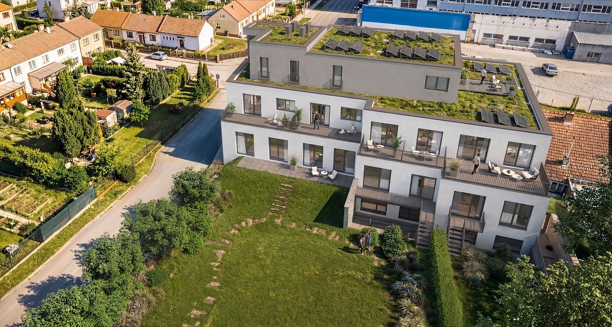 Byty jsou navrženy s důrazem na efektivní využití prostoru, dostatek denního světla a kvalitní materiály, které zajišťují dlouhou životnost i estetickou nadčasovost. Byty disponují vlastní terasou nebo předzahrádkou, k projektu náleží také sklepní kóje a parkovací stání přímo v domě.