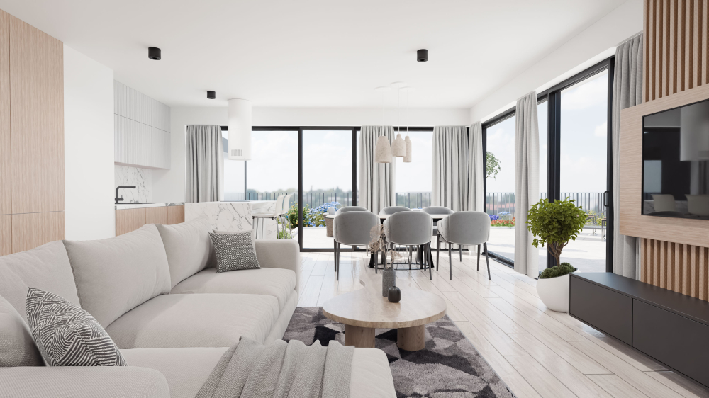 Nový bytový dům představující druhou etapu projektu pak nabídne moderní a komfortní bydlení v šesti podlažích s celkem 77 byty v dispozicích od praktických 1+kk po prostorné 4+kk, které uspokojí jak jednotlivce a páry, tak i rodiny s dětmi. Vybrané přízemní byty disponují soukromými předzahrádkami, zatímco byty v nejvyšších patrech se pyšní velkorysými terasami s nádhernými výhledy do okolní krajiny. Všechny byty budou dokončeny ve vysokém standardu, zahrnujícím vinylové podlahy, keramické obklady a dlažby v koupelnách, moderní plastová okna s izolačními trojskly v antracitovém provedení, podlahové vytápění a klimatizační jednotky pro maximální komfort.