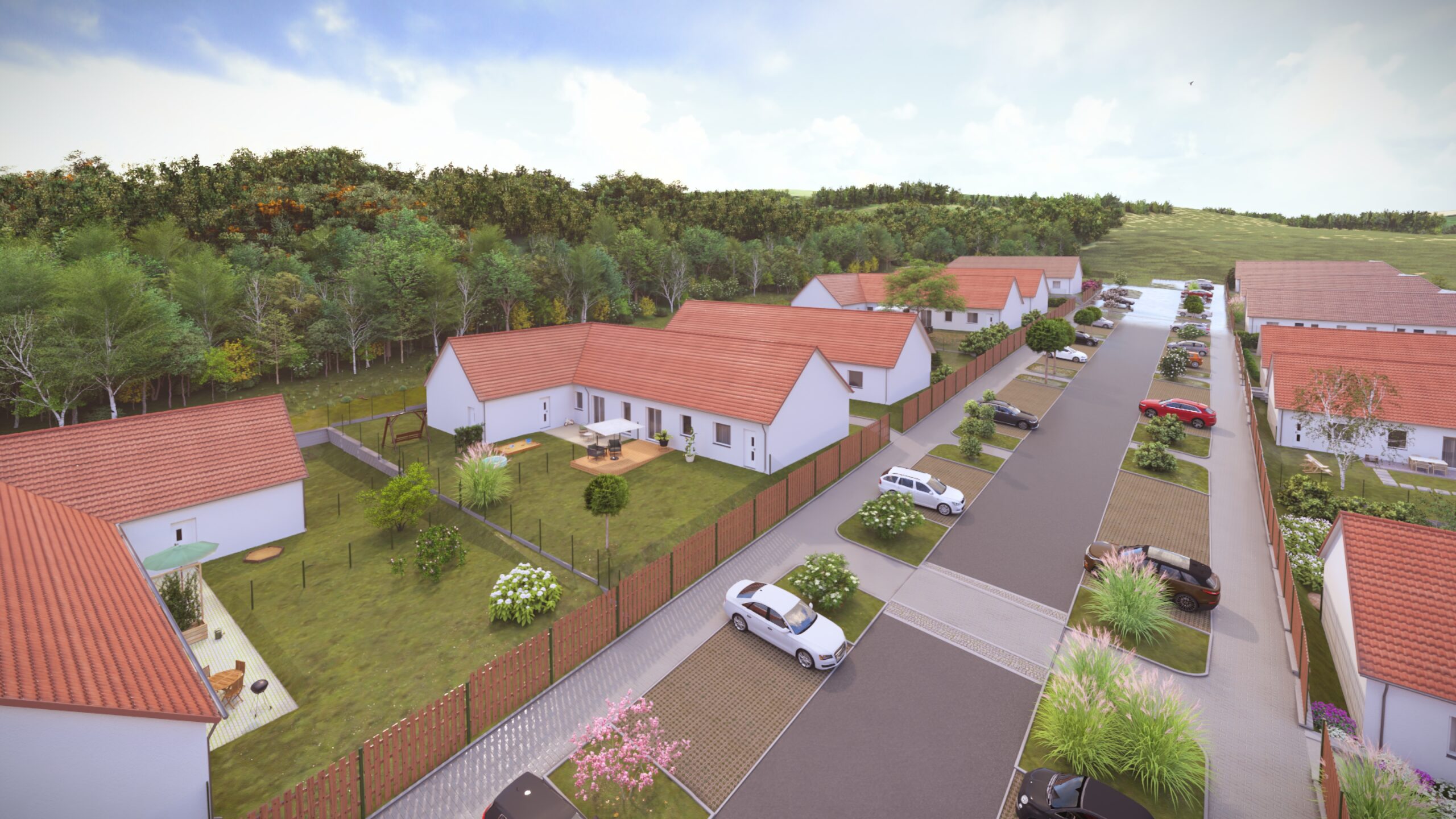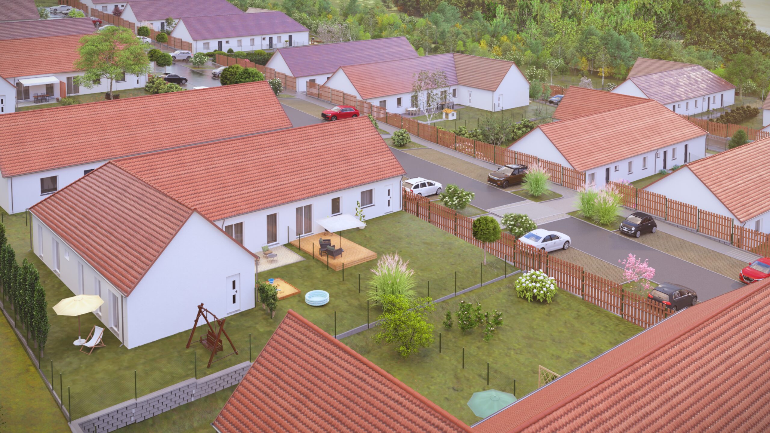 Nabídku tvoří byty o dispozici 4+kk, každý s vlastní zahrádkou, která rozšiřuje obytný prostor a poskytuje ideální místo pro relaxaci, rodinné posezení i volnočasové aktivity. Domy nejsou podsklepené a jsou řešeny s důrazem na praktičnost, pohodlí a dlouhodobou úspornost. O vysoký tepelný komfort a nízké provozní náklady se stará podlahové vytápění v kombinaci s tepelným čerpadlem, díky čemuž projekt dosahuje energetické třídy B. Ke každému bytu náleží soukromé parkovací stání pro dvě auta.