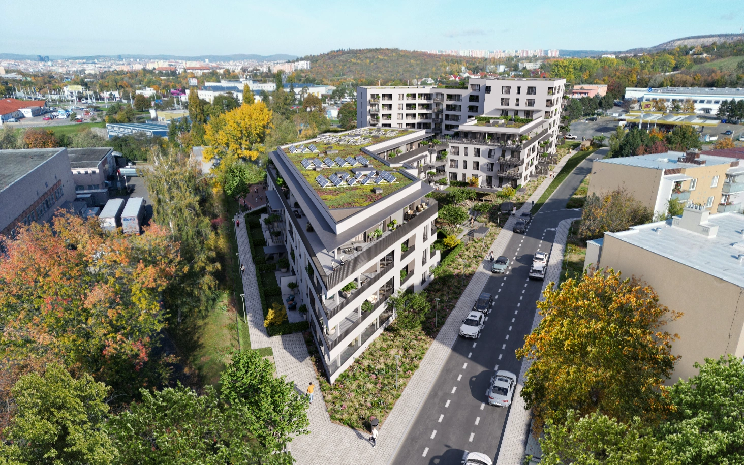 Součástí rezidence jsou také parkovací místa, sklepní kóje a kolárny, které zajišťují dostatek úložného prostoru i zvýšené pohodlí. Architektonické řešení klade důraz na moderní městské bydlení s kvalitní architekturou a praktickými dispozicemi. Projekt je koncipován jako místo pro dlouhodobé a komfortní bydlení s kompletním zázemím a vyváženým poměrem mezi klidem rezidenční čtvrti a dostupností města.