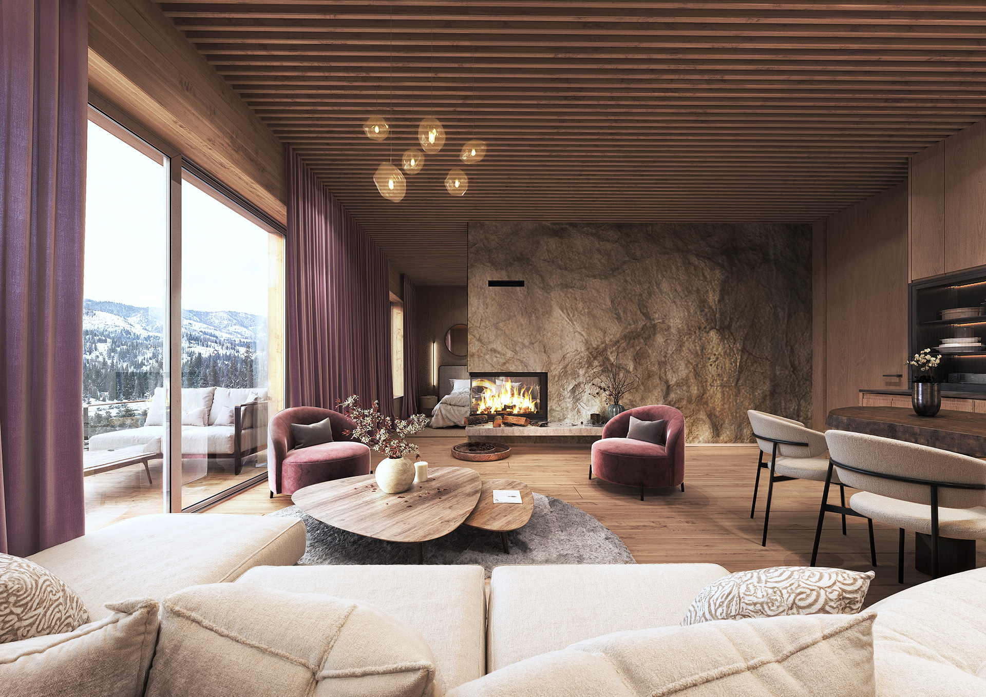 Užitné plochy apartmánů se pohybují přibližně od 30,5 m² do 89,4 m² a jsou navrženy s důrazem na efektivní dispozice, dostatek úložných prostor a komfort jak pro krátkodobý pobyt, tak pro dlouhodobé užívání. Vybrané jednotky disponují balkonem nebo terasou s výhledy na okolní svahy a horskou krajinu. Všechny apartmány budou kompletně vybaveny v jednotném moderním stylu, včetně kuchyňského koutu a nábytku, a jsou uzpůsobeny profesionálnímu aparthotelovému provozu.