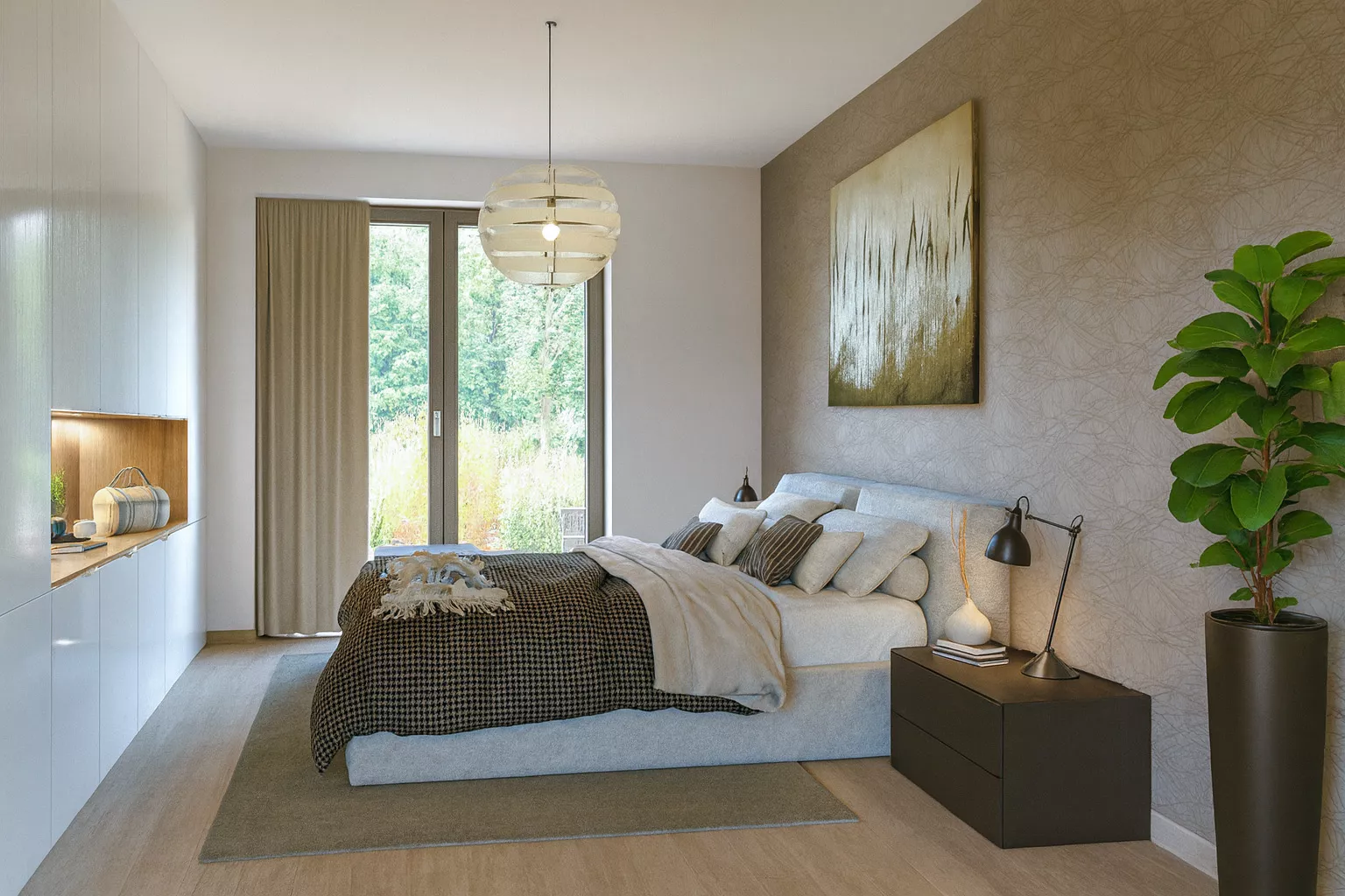 Všechny jednotky mají prostorné a slunné zahrady orientované tak, aby byly dobře osluněné po většinu dne, a interiéry jsou s venkovním prostorem propojeny velkými prosklenými plochami a francouzskými okny. Domy o dispozici 5+kk nabízí jak garáž, tak další parkovací místo před ní a úložné prostory pro věci běžné rodinné potřeby.