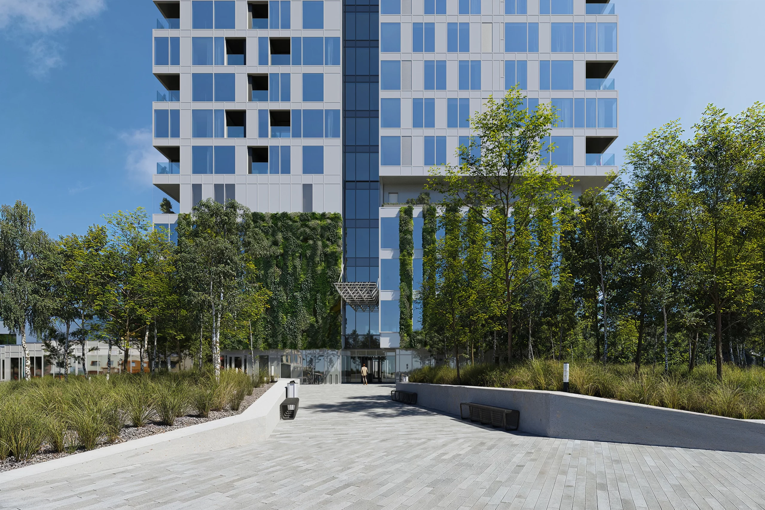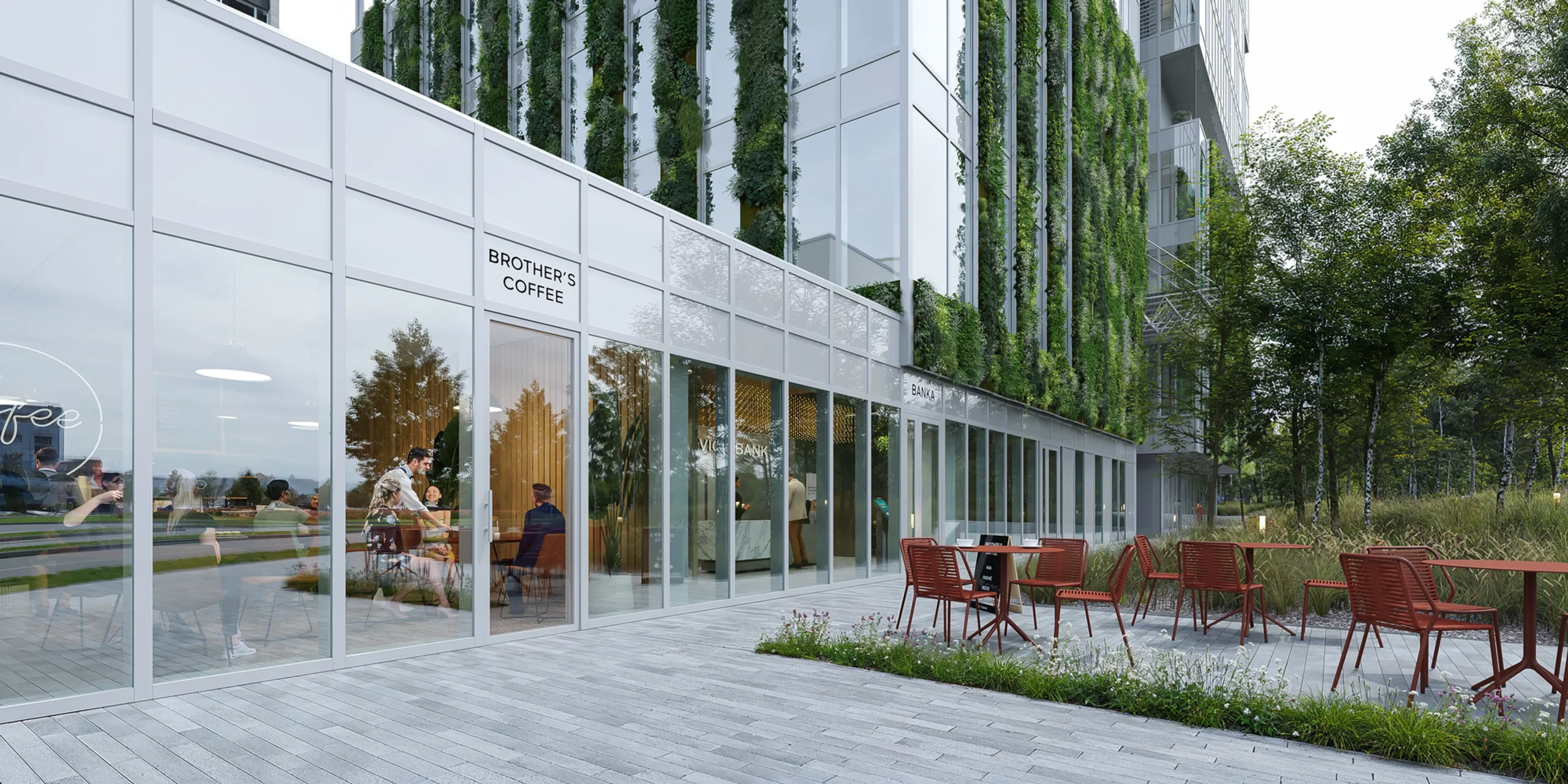 Projekt nabídne také nepřetržitou recepci s concierge službou, která zajistí vše od přebírání zásilek až po uložení chlazených nákupů do vyhrazených boxů. Mezi klíčové výhody patří nízkoemisní zasklení, centrální rekuperace vzduchu, fotovoltaické panely, zachytávání a využití dešťové vody, zelené střechy a částečně zelené fasády, které se podílí na přirozeném ochlazování budovy a zlepšují mikroklima.