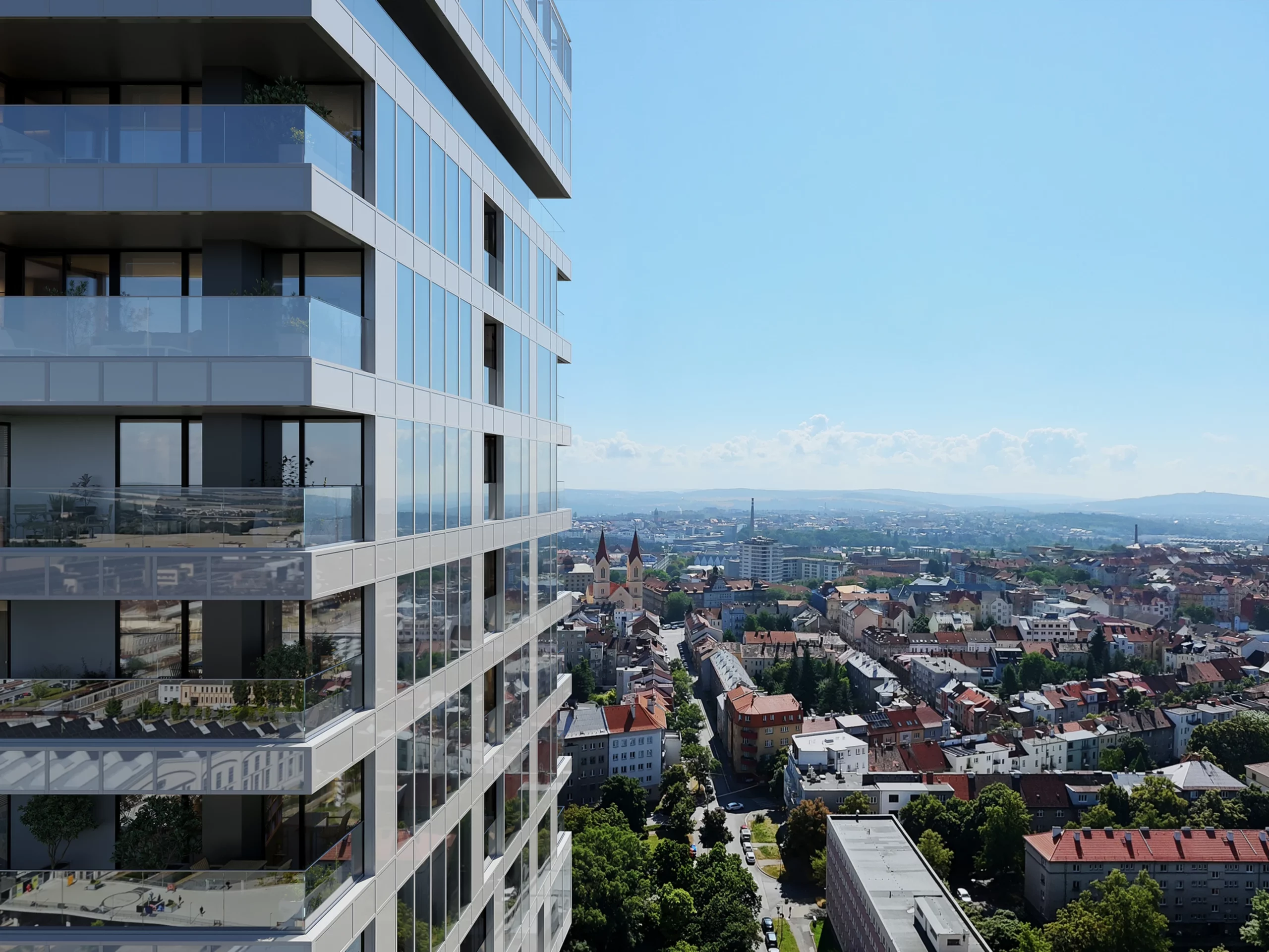 Součástí stavby budou také kanceláře v druhém až čtvrtém patře, technické zázemí, bistro v přízemí a veřejně přístupná vyhlídka ve 26. patře – nejvýše položená vyhlídka v Plzni. Dokončení je plánováno na rok 2028.