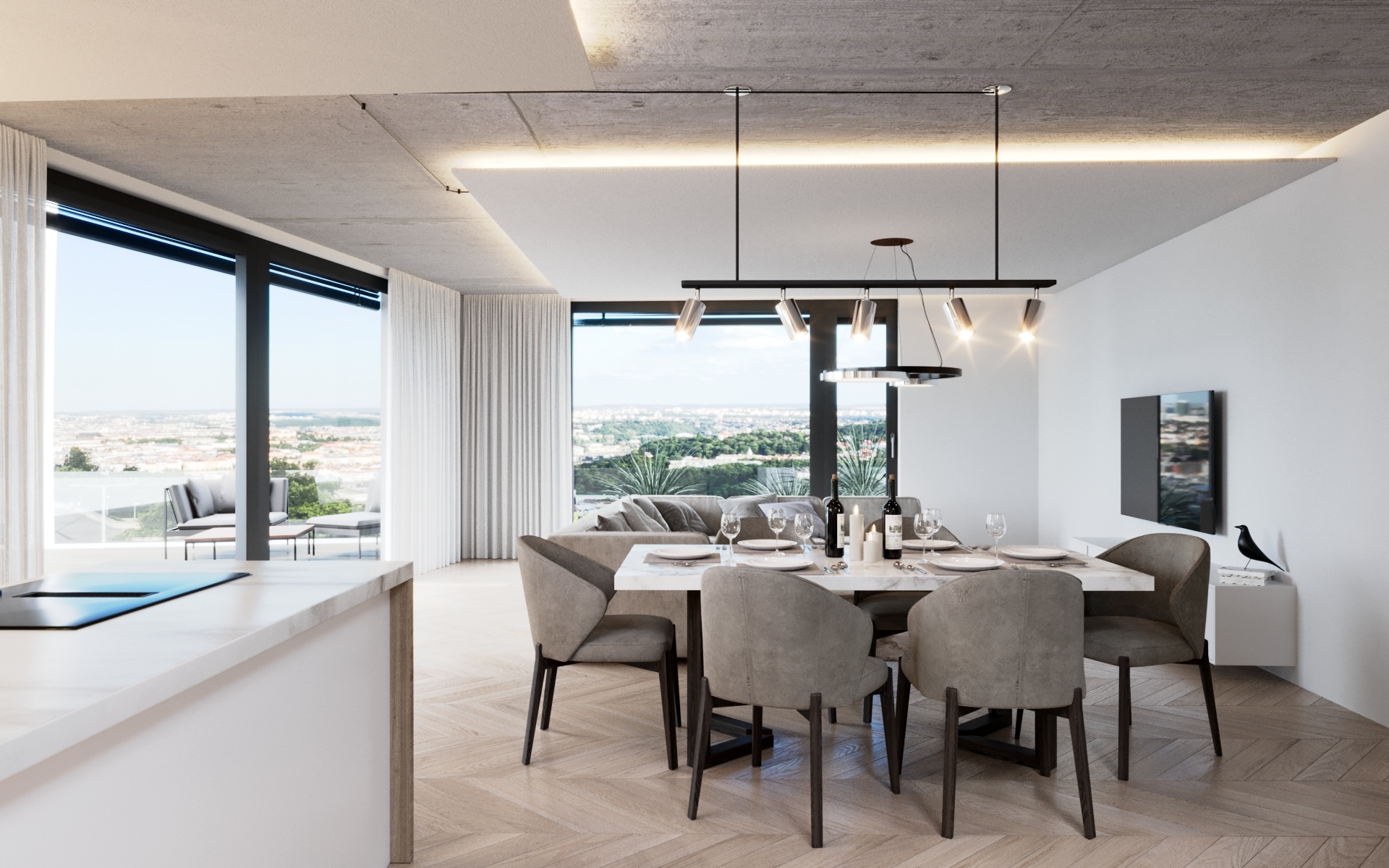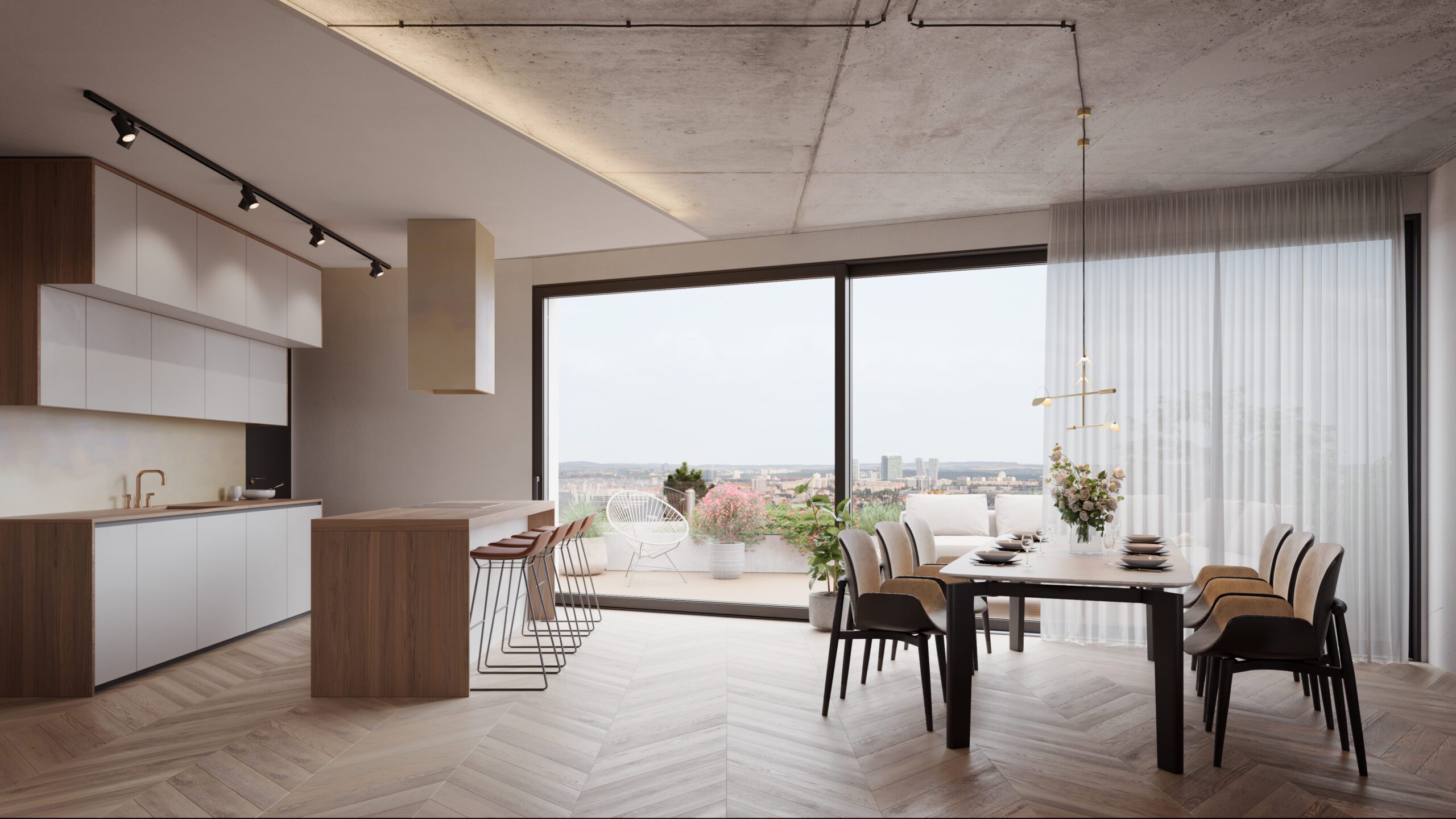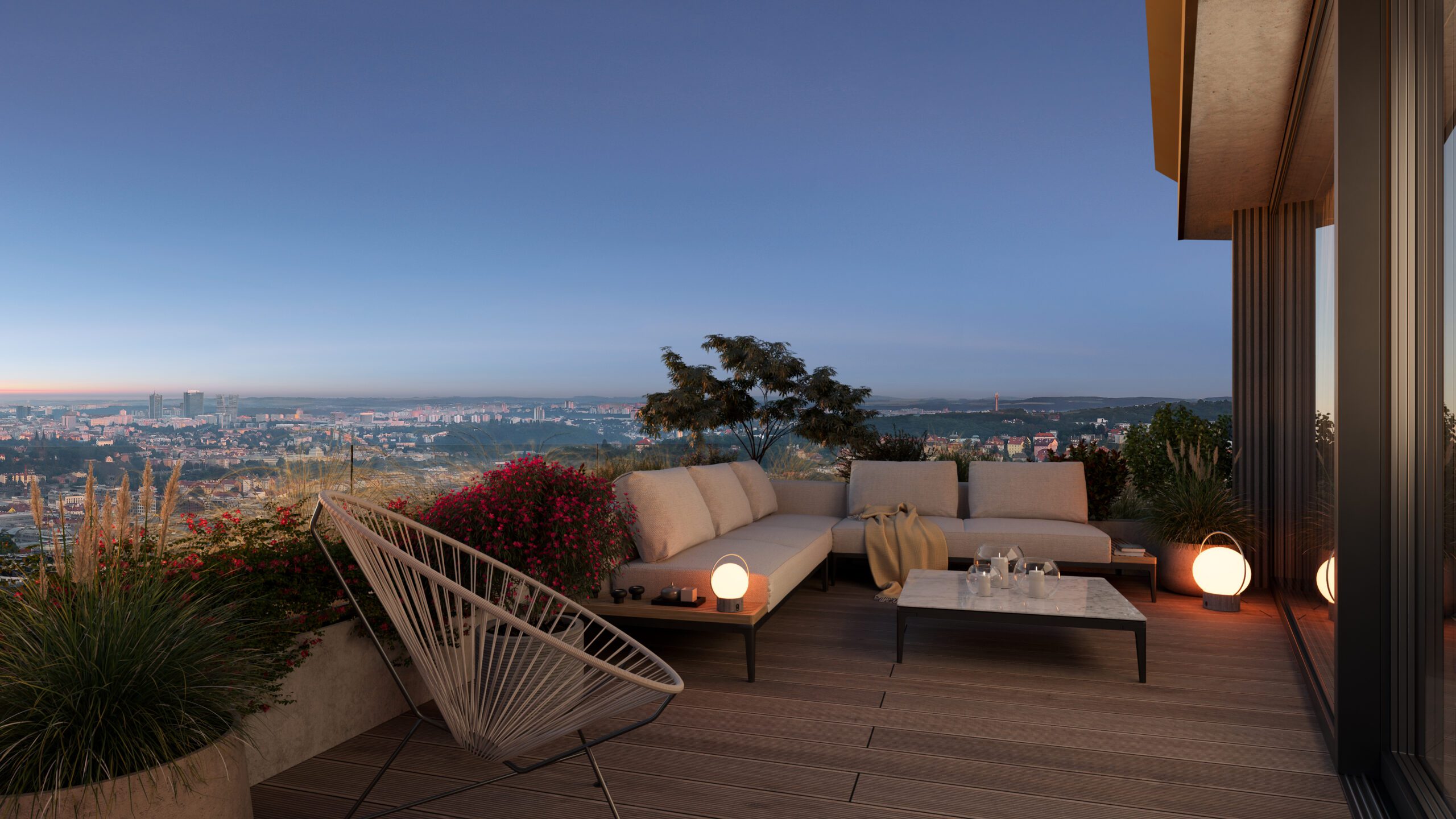 Každý byt je originál s vlastní identitou, dispozicemi i řešením venkovních prostor – od luxusního penthousu o ploše přibližně 157 m² se střešní terasou o velikosti 70 m², přes byty s prostornými terasami kolem 45 m² až po velkorysé mezonety o rozloze až 195 m², z nichž jeden disponuje vlastní zenovou zahradou. Dispozice se pohybují od 3+kk po 4+kk a jsou navrženy s důrazem na prostor, světlo a výhledy, které tvoří zásadní součást bydlení.
