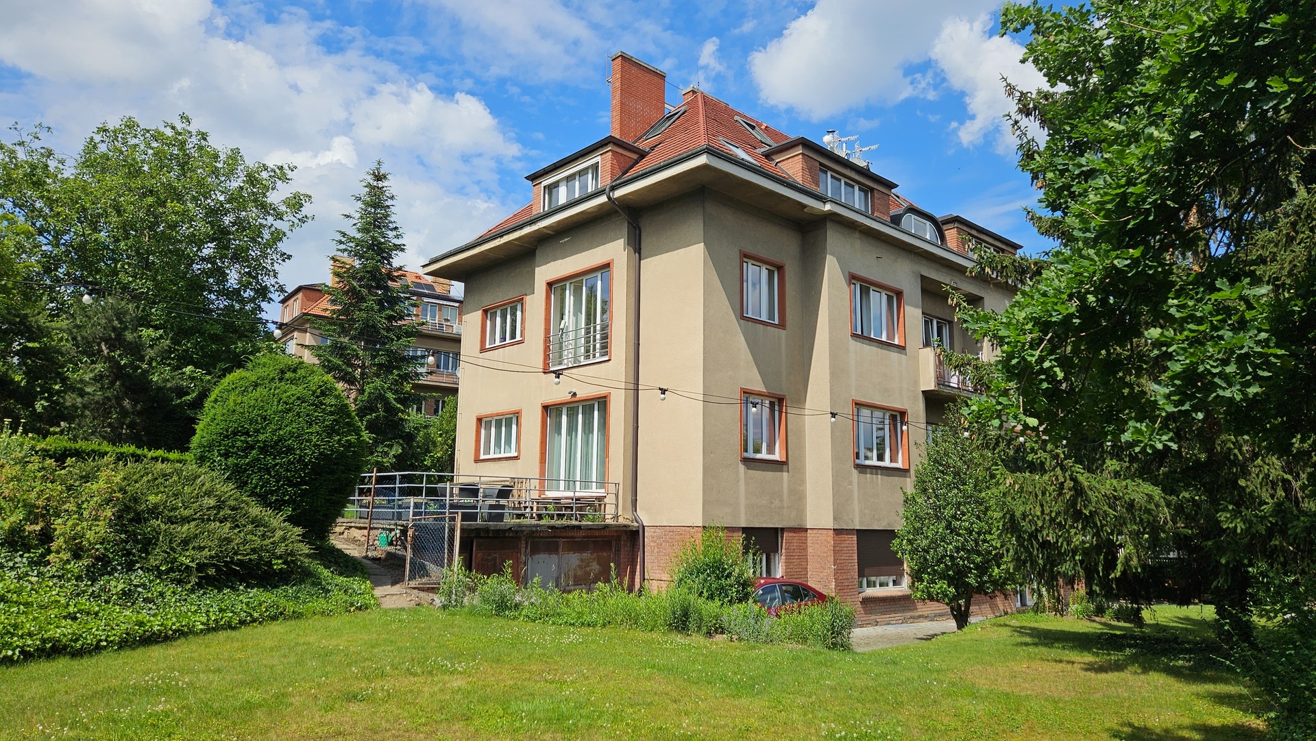 Byty jsou ve velmi dobrém technickém stavu po částečné rekonstrukci a připravené k okamžitému užívání. Dům je obklopen soukromou vzrostlou zahradou o rozloze přibližně 1 270 m², která poskytuje rezidentům klidné zázemí pro relaxaci, odpočinek i neformální setkávání.