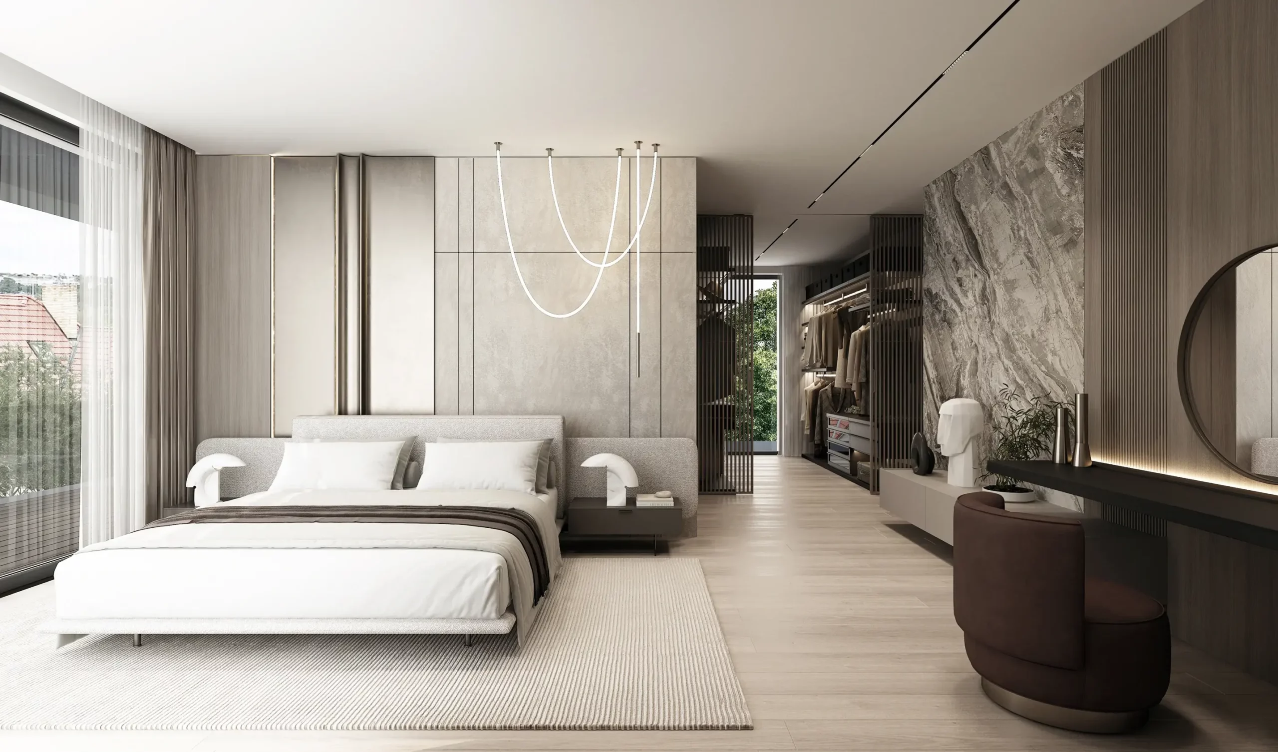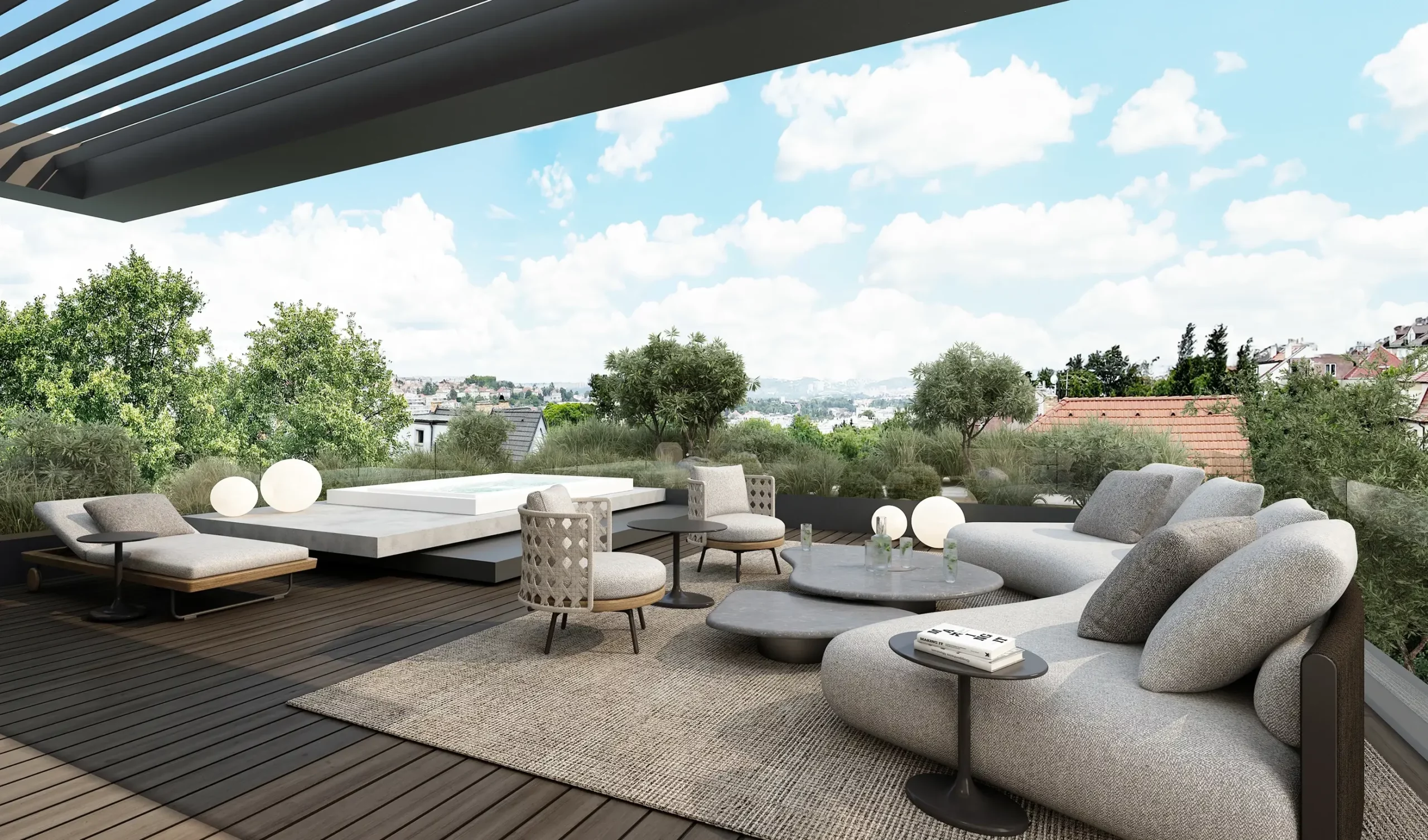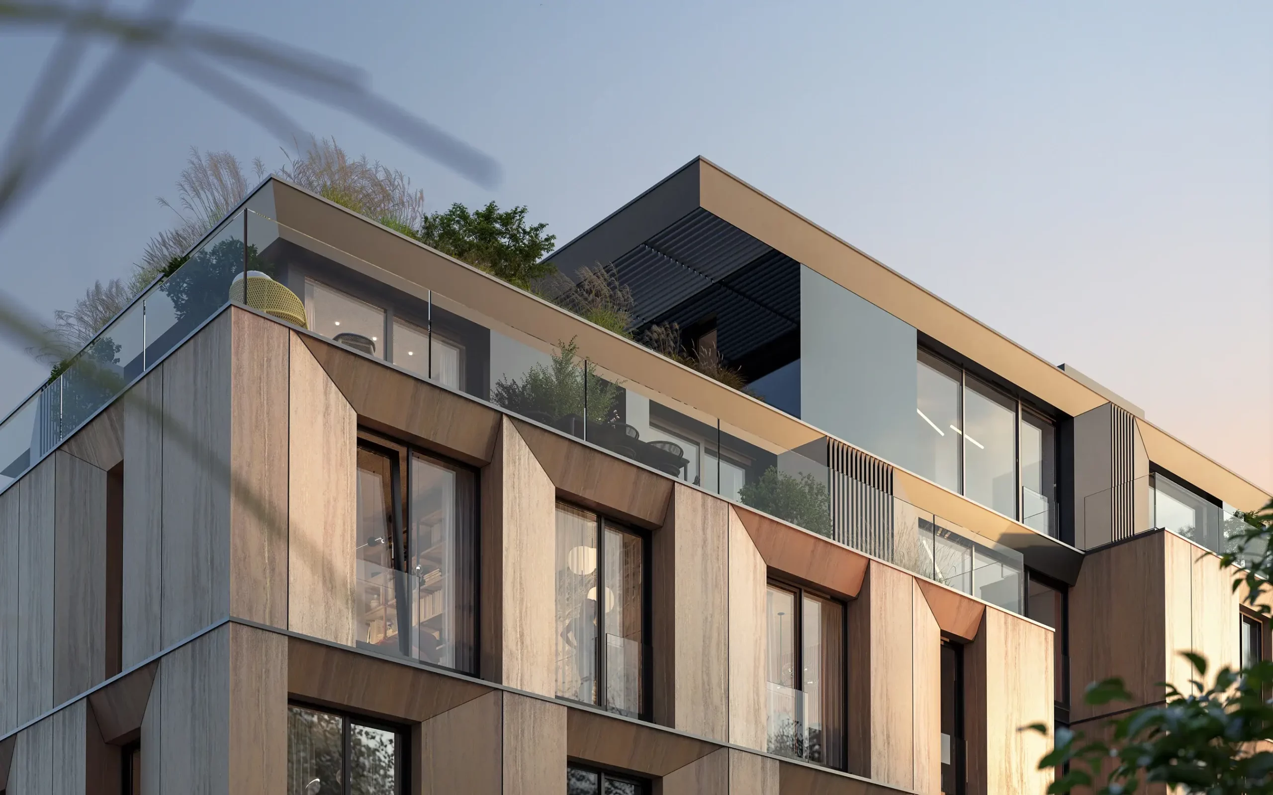 Byty v přízemí disponují soukromými zahradami, zatímco jednotky ve vyšších podlažích nabízejí prostorné lodžie a terasy s výhledy do zeleně. Nejvyšší podlaží je věnováno mezonetovému penthousu s rozlehlou terasou. Interiéry vynikají špičkovým standardem provedení – samozřejmostí jsou hliníková okna s izolačním trojsklem, třívrstvé dřevěné podlahy, velkoformátové obklady, nadstandardní sanita, podlahové vytápění, chlazené stropy, stínící technika i inteligentní systém chytré domácnosti. Komfort bydlení doplňují moderní technologie jako tepelná čerpadla a precizní akustické i tepelné izolace.