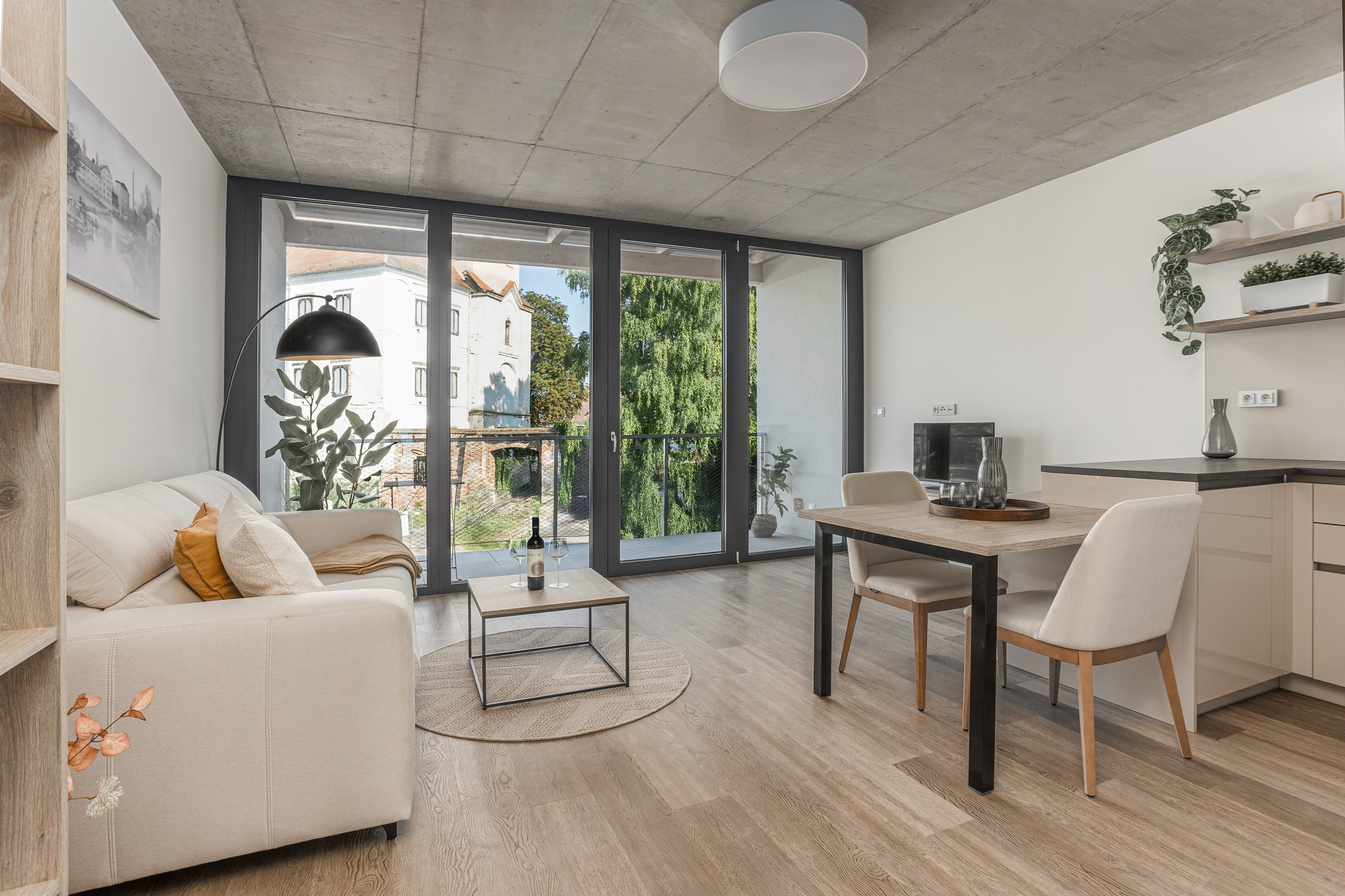 Byty jsou navrženy jako funkční a reprezentativní prostory splňující vysoké nároky na současné bydlení, s důrazem na kvalitní architekturu, moderní technologie a dlouhodobou energetickou efektivitu. Součástí projektu je 47 krytých parkovacích míst v podzemní garáži, přičemž každé parkovací stání je připraveno na instalaci dobíjecí stanice pro elektromobily. Ke každému bytu náleží sklepní kóje a rezidenti mohou využívat také 350 m2 privátní zeleně v podobě klidného přírodního atria, které slouží k odpočinku i vzájemnému setkávání.