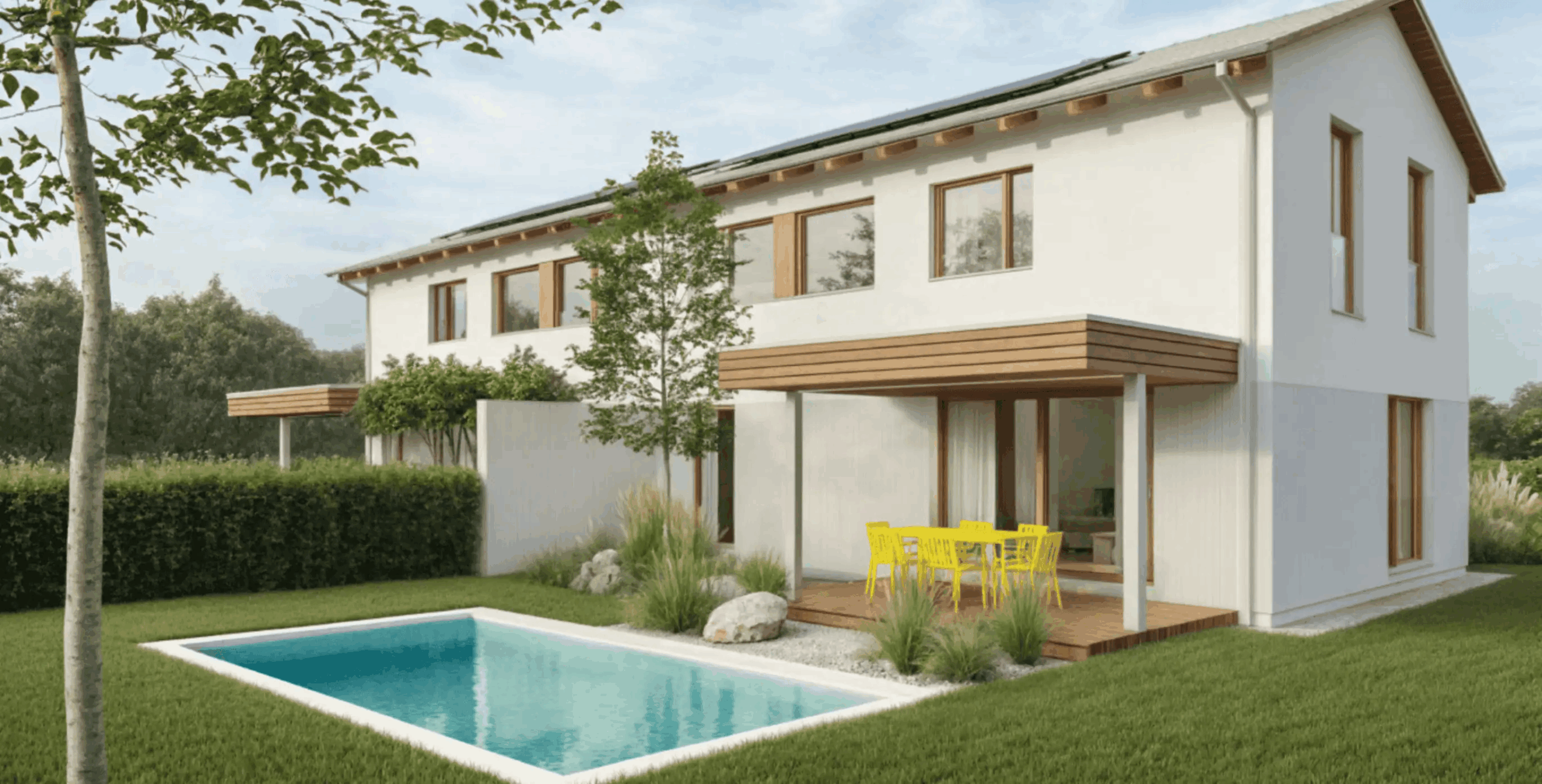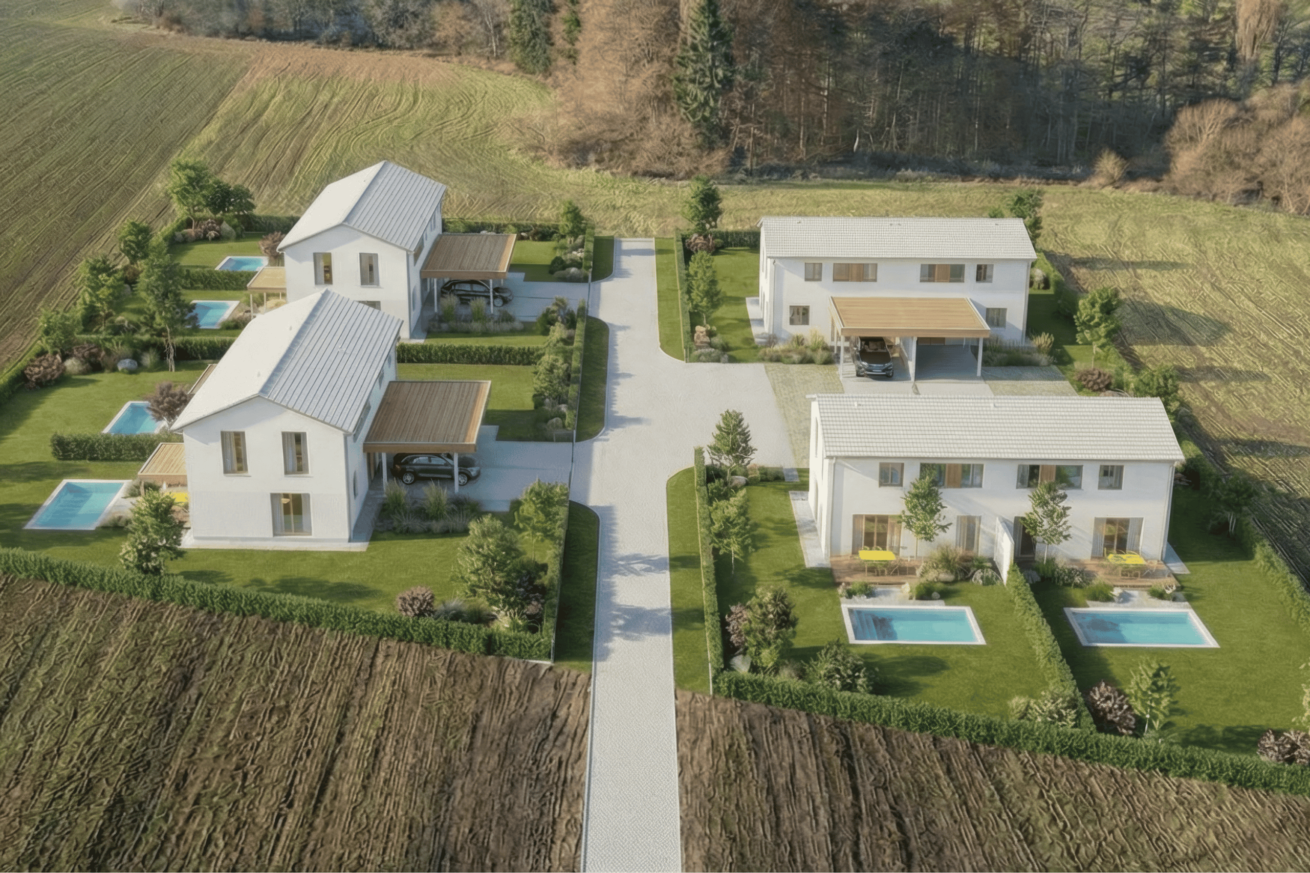 Jednotky jsou řešeny jako dvoupodlažní domy s dispozicí 5+kk a užitnou plochou přibližně 105 m², doplněné o prostorné zahrady o velikosti okolo 615 m², které poskytují dostatek prostoru pro relaxaci, rodinné aktivity i zahradničení. Projekt je realizován formou kvalitních dřevostaveb s důrazem na energetickou úspornost a nízké provozní náklady, což potvrzuje i energetická třída A. Standard lze dále individuálně rozšířit například o pergolu, carport nebo systém řízeného větrání s rekuperací.