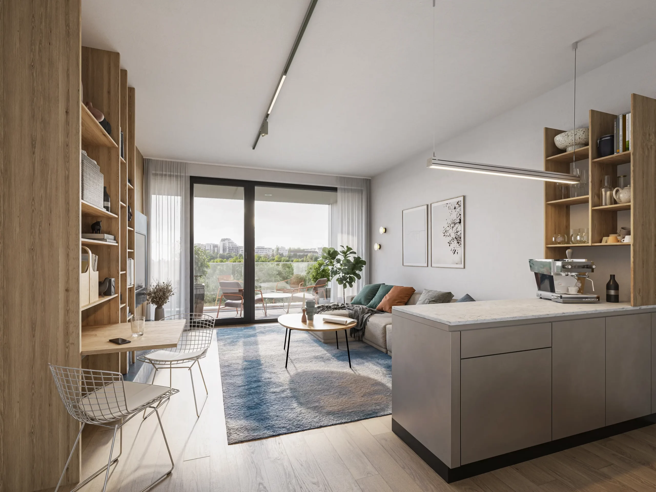 Nabídka zahrnuje byty s chytrými dispozicemi od 1+kk až po prostorné rodinné 5+kk. Většina bytových jednotek disponuje vlastním balkonem, terasou nebo předzahrádkou, což přináší příjemné soukromí i kontakt s venkovním prostorem. Byty nabídnou prostorné obytné plochy a výhledy do rozlehlého zeleného vnitrobloku s vodní plochou, relaxačními zónami a místy pro sportovní aktivity. Součástí projektu je také 700 parkovacích míst, dále také nebytové prostory vhodné například pro zdravotnické služby.