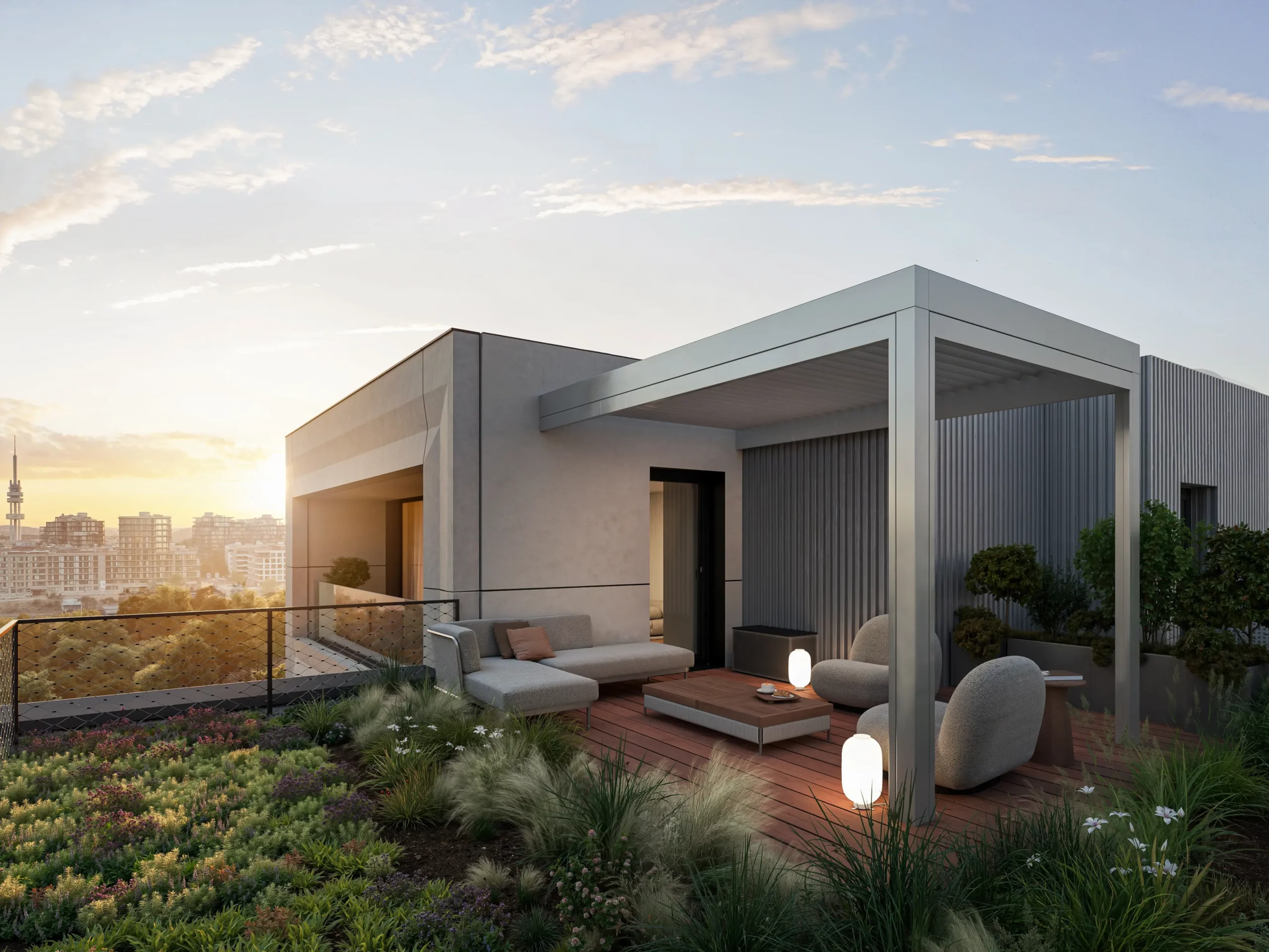 Architektonický koncept vznikl ve spolupráci nizozemského studia Benthem Crouwel Architects a českého ateliéru RA15, které vytvořily kaskádovitě uspořádané domy plné denního světla, výhledů a otevřených prostor. Projekt je navržen s důrazem na komunitní charakter bydlení a kvalitní veřejný prostor, jehož dominantou je rozsáhlý park o rozloze přibližně jednoho hektaru přímo u domů, poskytující místo pro relaxaci, setkávání i volnočasové aktivity. Celkově jde o bydlení inspirované současnými potřebami, které spojuje moderní architekturu, funkčnost a příjemnou sousedskou atmosféru v docházkové vzdálenosti od centra města.