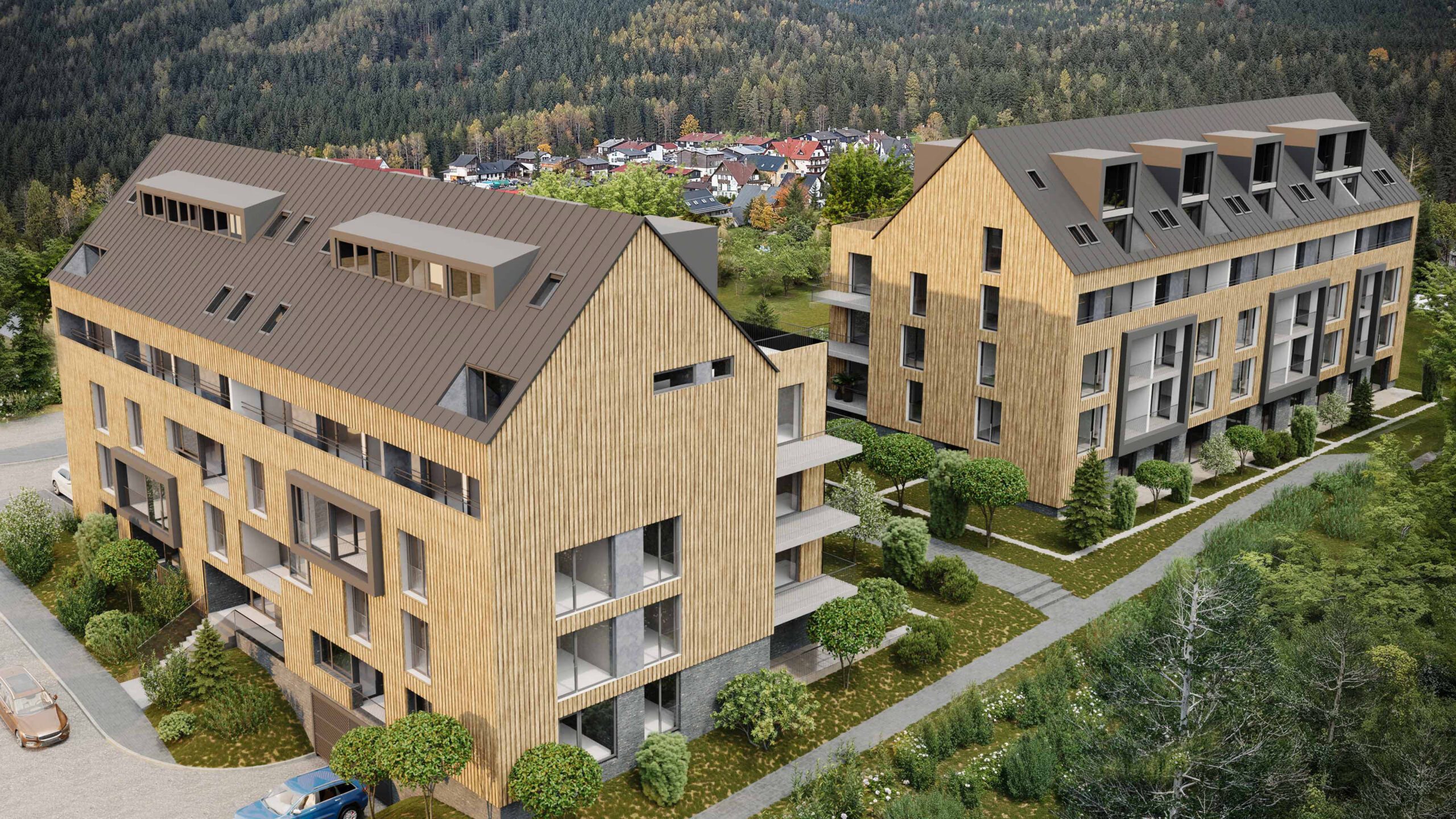 Byty jsou navrženy v dispozicích od 2+kk po 4+kk a kladou důraz na promyšlené dispozice, dostatek denního světla a kvalitní materiálové provedení. Součástí většiny bytů jsou balkony nebo terasy, které přirozeně rozšiřují obytný prostor a umožňují plně si vychutnat výhledy do okolní horské krajiny.